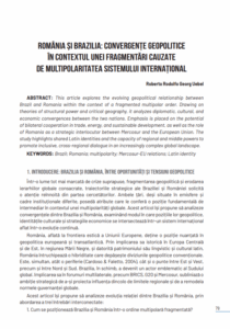 O artigo, intitulado “România și Brazilia: convergențe geopolitice în contextul unei fragmentări cauzate de multipolaritatea sistemului internațional”, analisa as convergências geopolíticas entre Brasil e Romênia, bem como as possibilidades de cooperação entre o Mercosul e a União Europeia em um contexto de fragmentação da multipolaridade internacional.